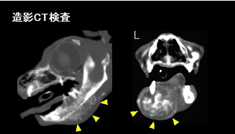 左下顎に発生した扁平上皮癌の造影CT画像